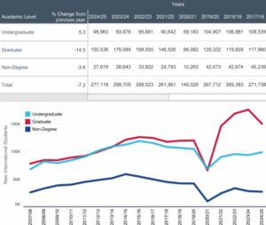 Her story is one of the issues fueling this year’s enrollment decline. All those problems, including visa delays, unpredictable travel outcomes are leading to a growing fear that studying in the United States has become less stable and less accessible.