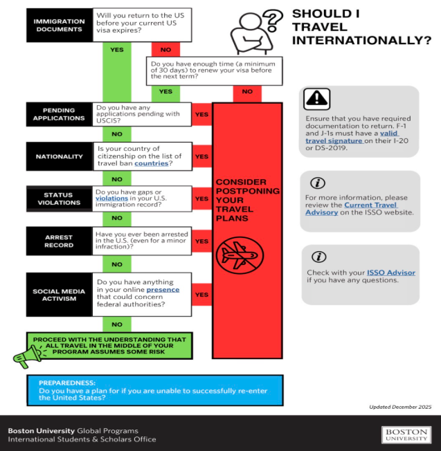 For many international students, winter break has quietly shifted from a time of reunion to a period of careful decision-making. With no clear travel ban but continued warnings, students say the responsibility falls on them to decide what risks are worth taking.
