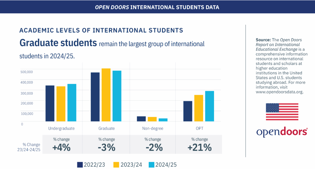 According to data from the Open Doors Report, published by the Institute of International Education, international students make up a significant share of U.S. higher education, across undergraduate, graduate, and Optional Practical Training (OPT) programs. However, federal systems do not track how many students travel during academic breaks or how many decide to stay.